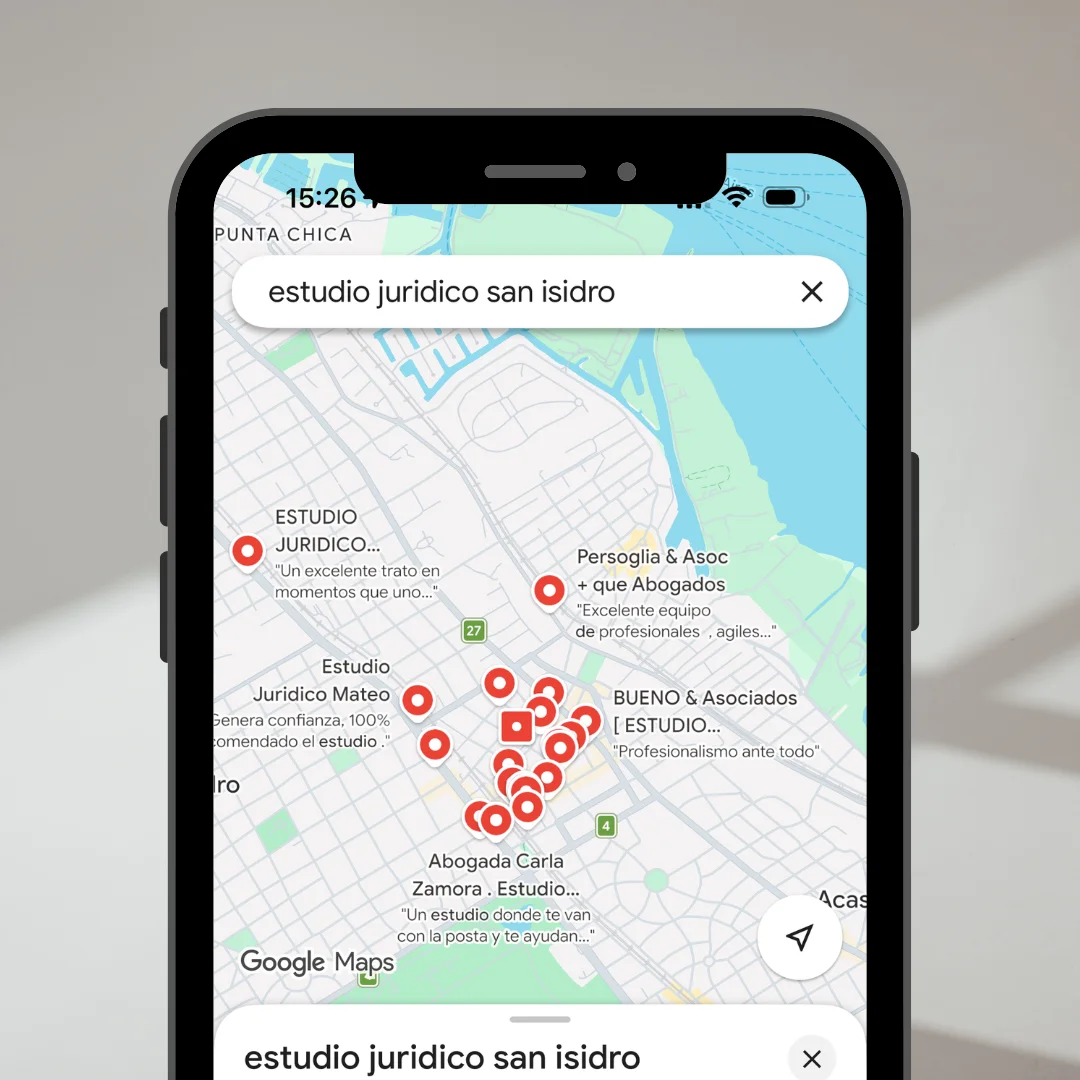 San Isidro es una de las zonas con mayor concentración de profesionales y negocios de calidad en Buenos Aires. Estudios jurídicos, consultorios médicos, inmobiliarias, comercios premium y empresas de servicios que necesitan una presencia digital a la altura de su reputación.